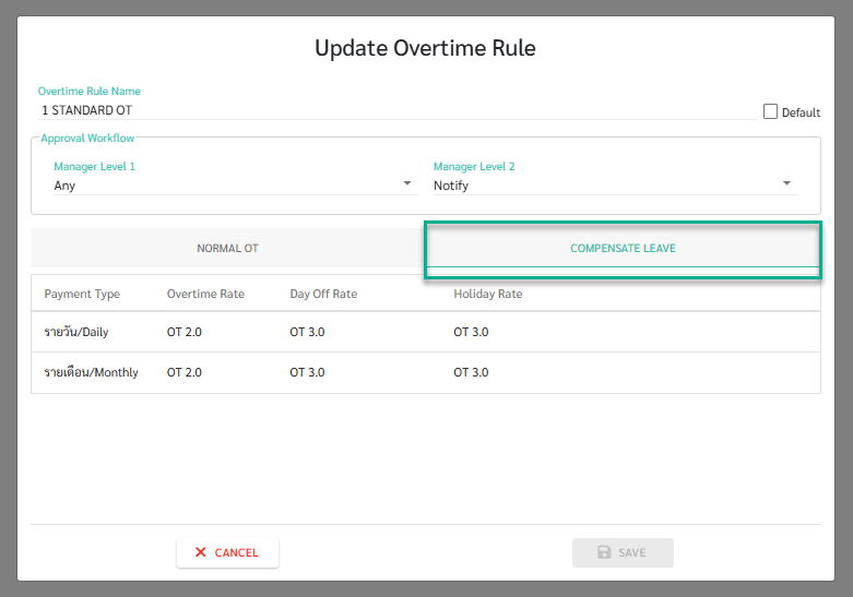 การตั้งค่าและใช้งานระบบสะสมวันลาชดเชยคำนวณจากอัตรา OT (Compensatory Leave using OT Multipliers)