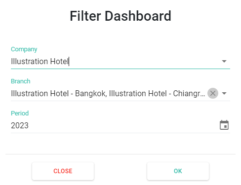 ตัวกรอง (Filter) จากนั้นเลือก บริษัท (Company) สาขา (Branch) ช่วงเวลา (Period) ที่ต้องการดูข้อมูล