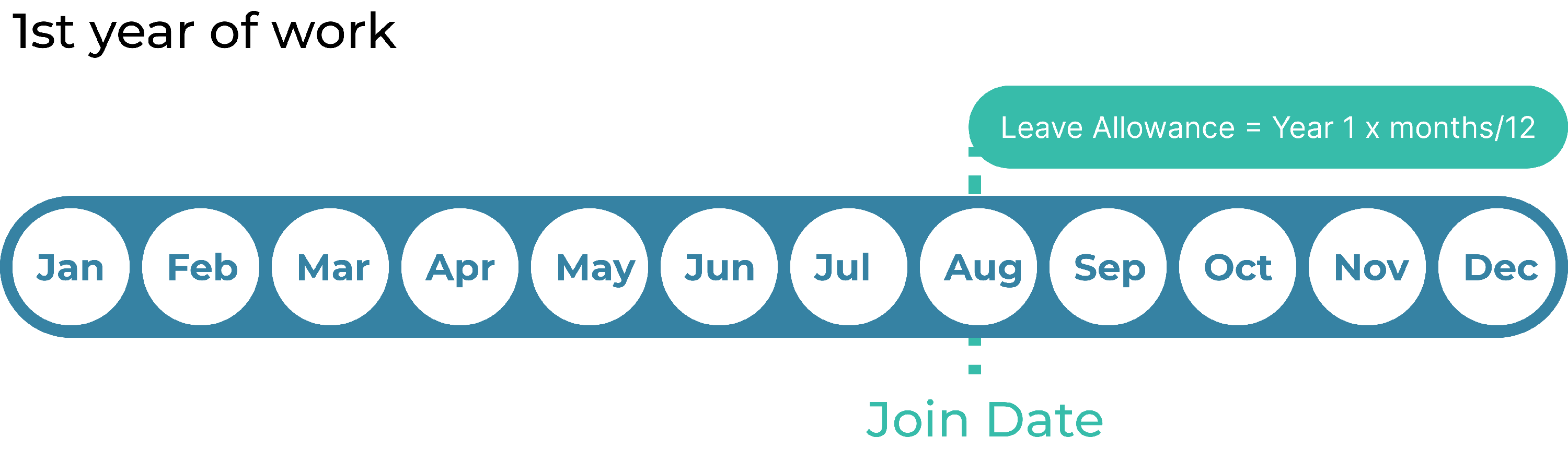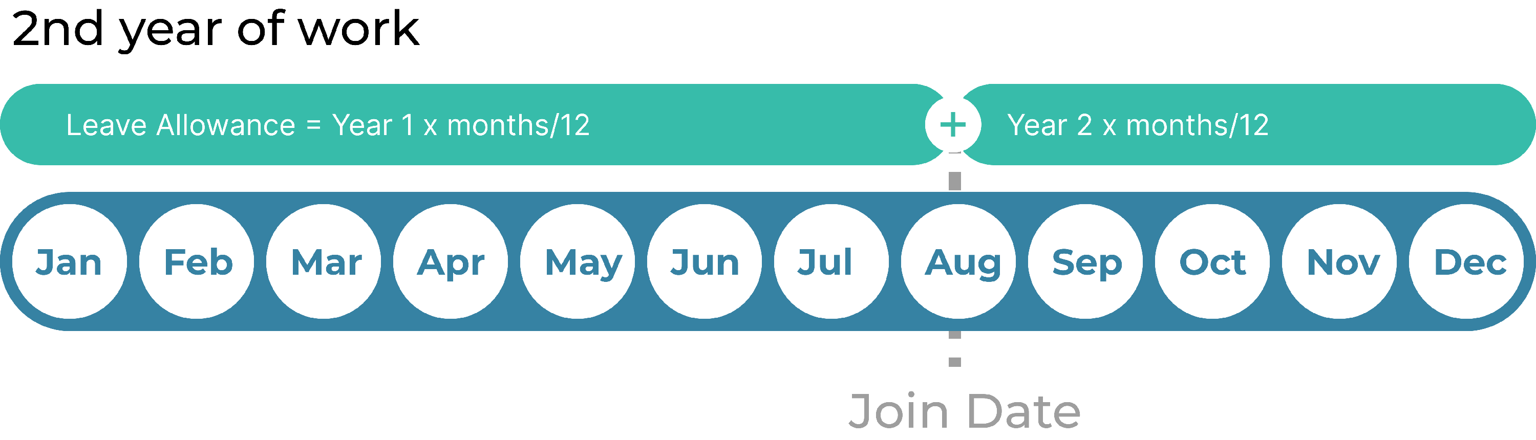 หากพนักงานเข้างานกลางปี จำนวนสิทธิวันลา (Leave Allowance) ของปีที่ 2 จะคำนวณตามสัดส่วนของสิทธิวันลาในปีที่ 1 และสัดส่วนของสิทธิวันลาในปีที่ 2 รวมกัน