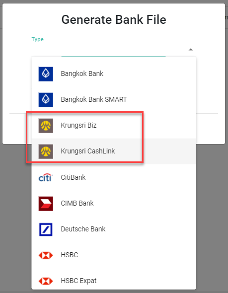 ○ คุณสามารถสร้างไฟล์ธนาคารของธนาคารกรุงศรีอยุธยาโดยสามารเลือกเป็น Krungsir Biz หรือ Krungsri CashLink ได้