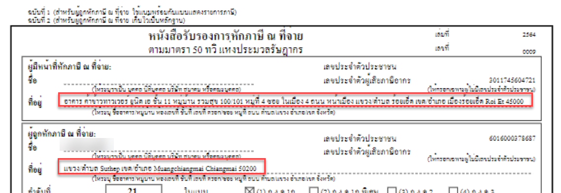 2) Address in W/T 50 Tawi Report (ที่อยู่ในรายงานภาษีหัก ณ ที่จ่าย 50 ทวิ)