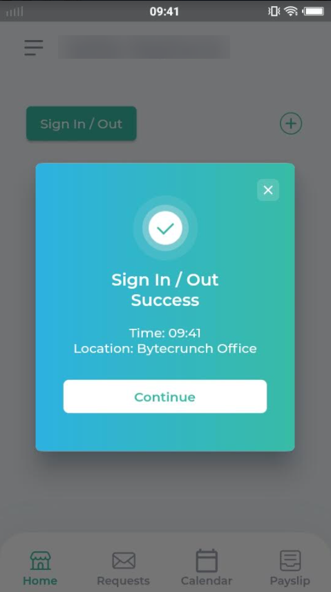 1.2) Sign In / Out Pop Up (หน้าต่างแสดงการลงชื่อเข้า/ออกงาน)