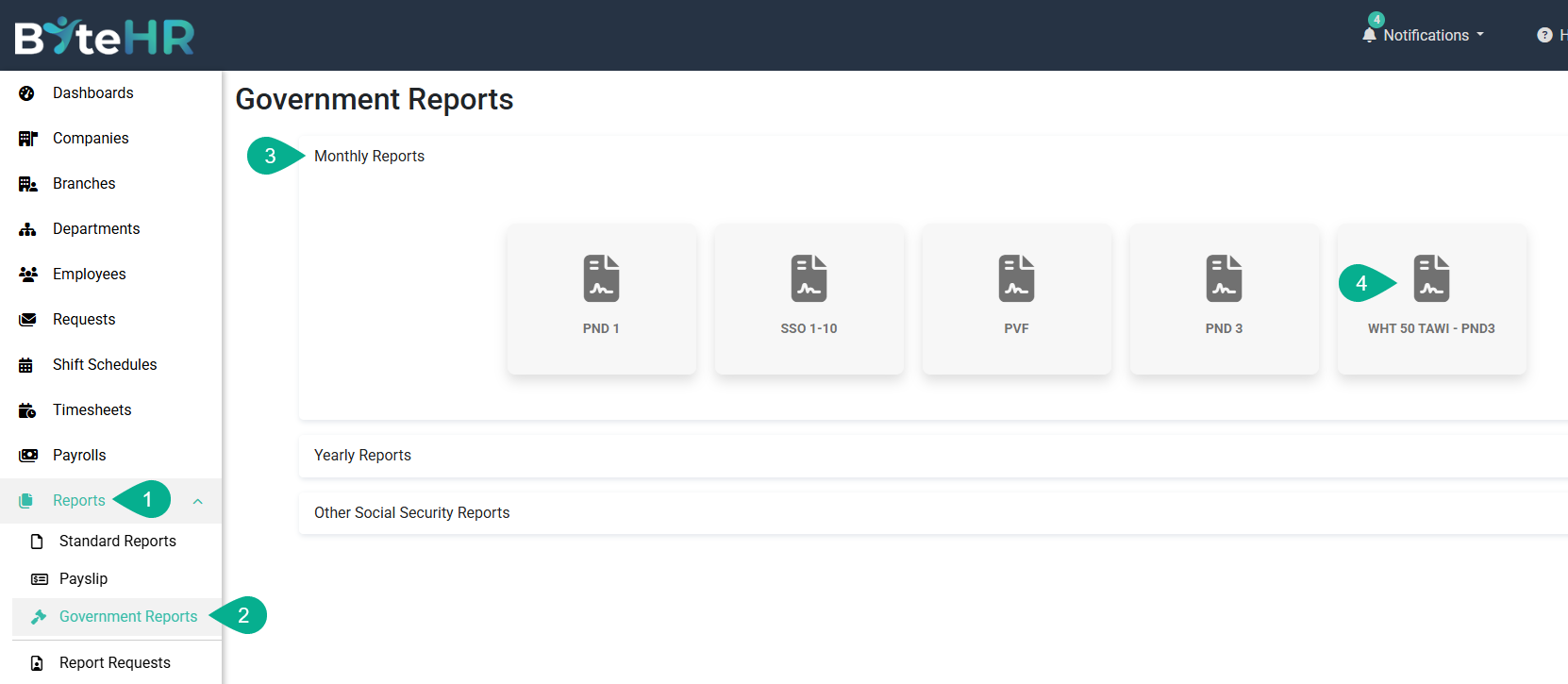 3. ไปที่ รายงานรายเดือน (Monthly Reports)