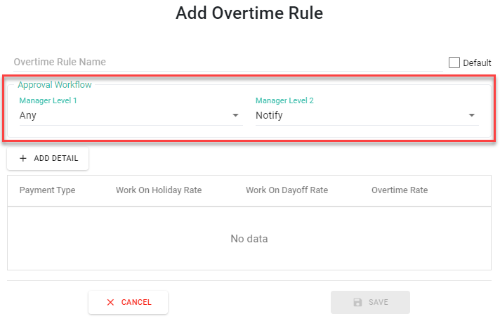 ○ You can set Approval Workflow at OT Rules for OT Request