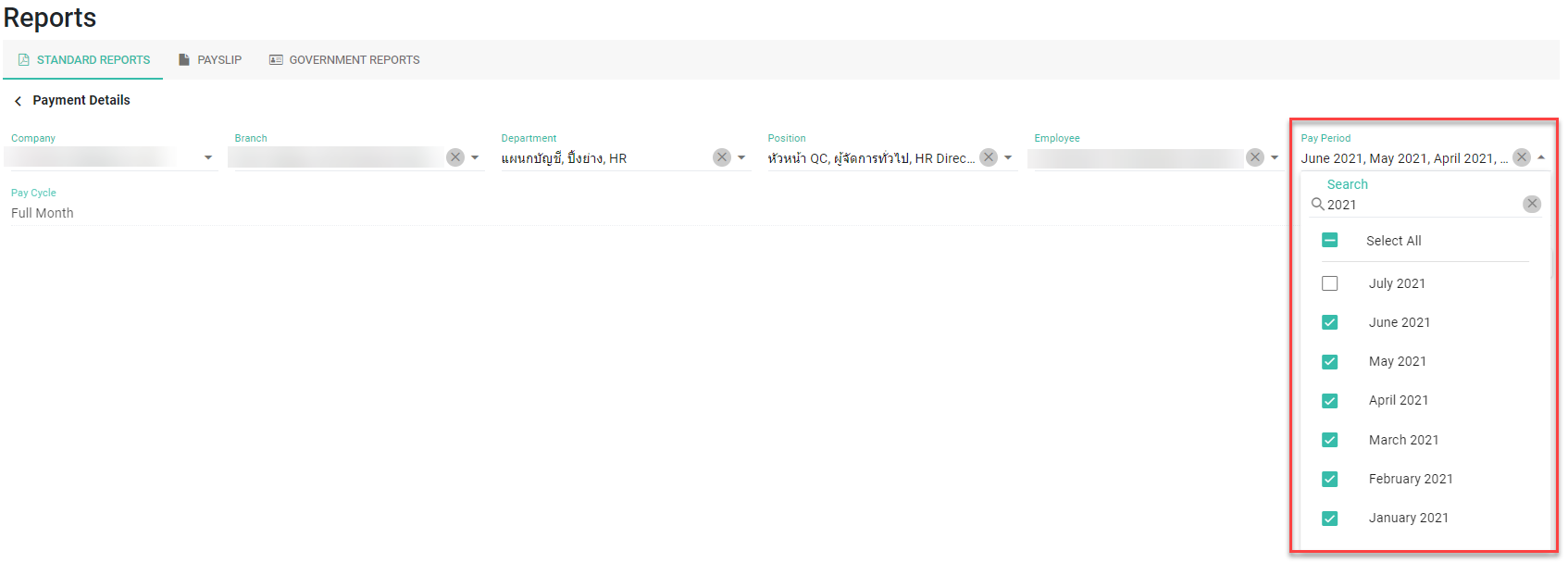 1) Generate Payment Details Report & Payment Summary Report for Multiple Months (สร้างรายงานรายละเอียดการจ่ายเงินและรายงานสรุปการจ่ายเงินสำหรับหลายเดือน)