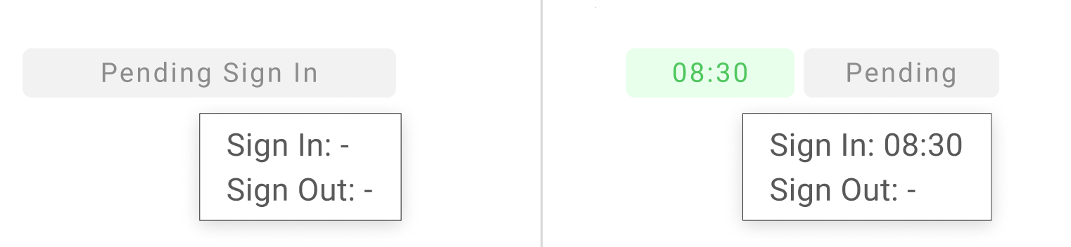 5. ตารางเวลาแสดง รอลงชื่อเข้างาน(Pending Sign In) / รอลงชื่อ(Pending) หมายถึง มีข้อมูลรอการลงเวลาเข้า/ออกงาน และสถานะนี้จะแสดงเฉพาะวันในปัจจุบันเท่านั้น