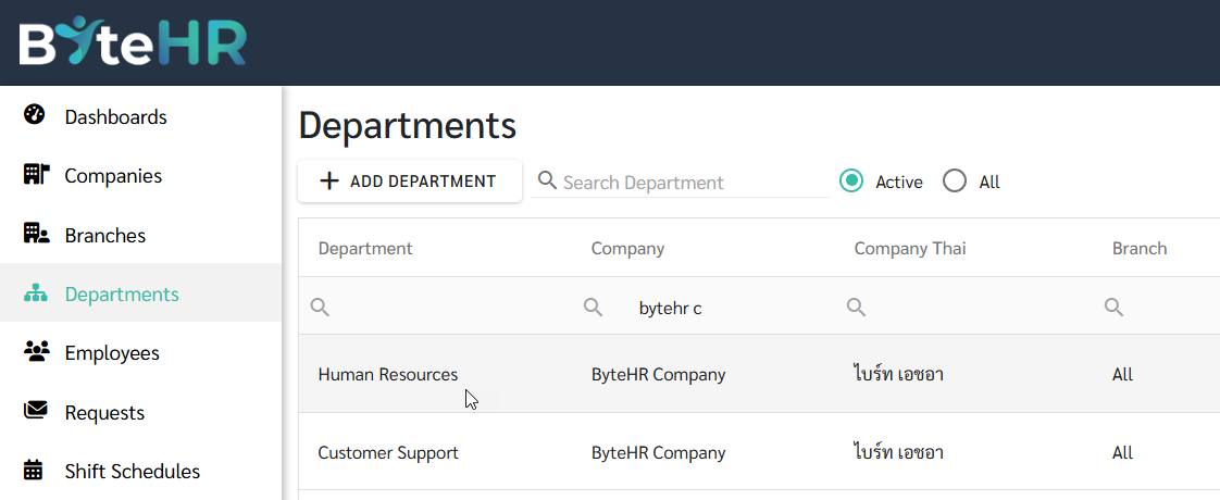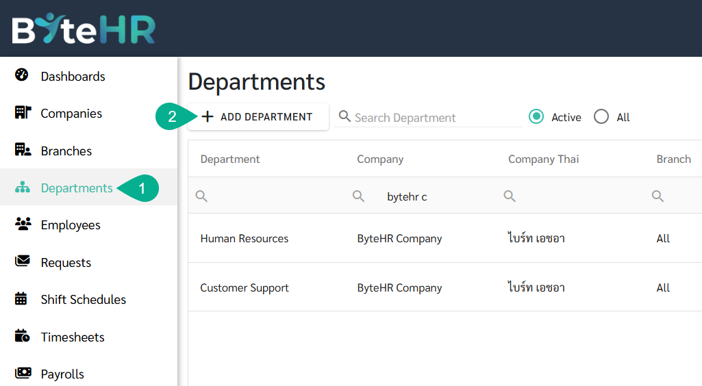○ หากเพิ่มแผนกและกดบันทึกในระบบเรียบร้อยแล้ว จะไม่สามารถแก้ไขบริษัท และ สาขา ในแผนกภายหลังได้