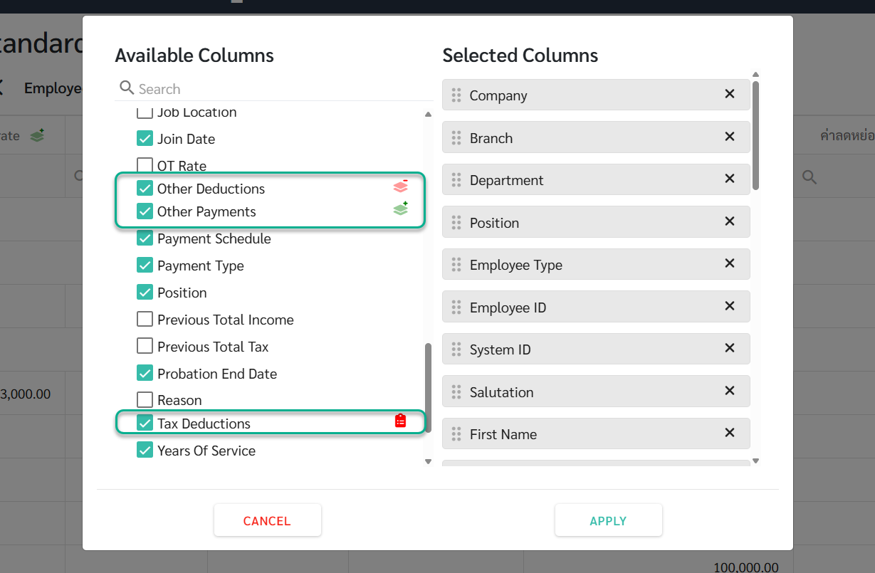 วิธีแสดงชื่อรายการเงินได้อื่นๆ เงืนหักอื่นๆ และค่าลดหย่อนภาษี ในรายงาน