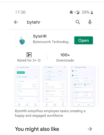 ○ To download the app, open the app store and search for "ByteHR"