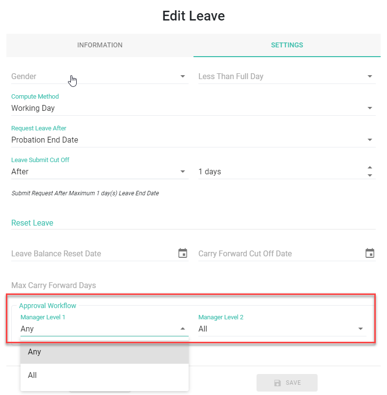 ○ The approval workflow for each leave type will be set in the Preferences --> Leave section.
