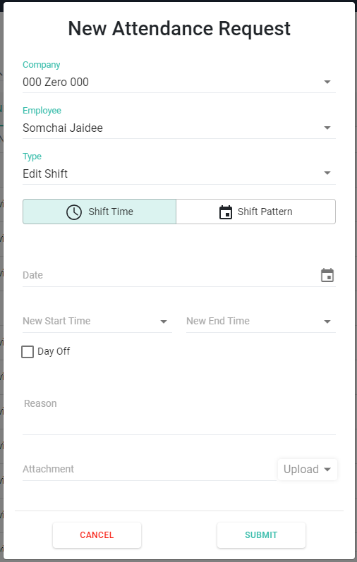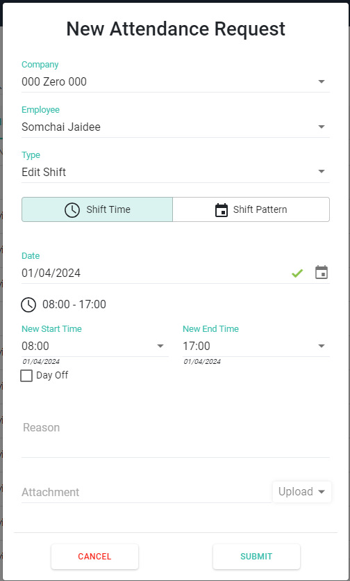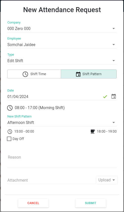 คำร้องขอแก้ไขกะการทำงาน (Attendance Request - Edit Shift)