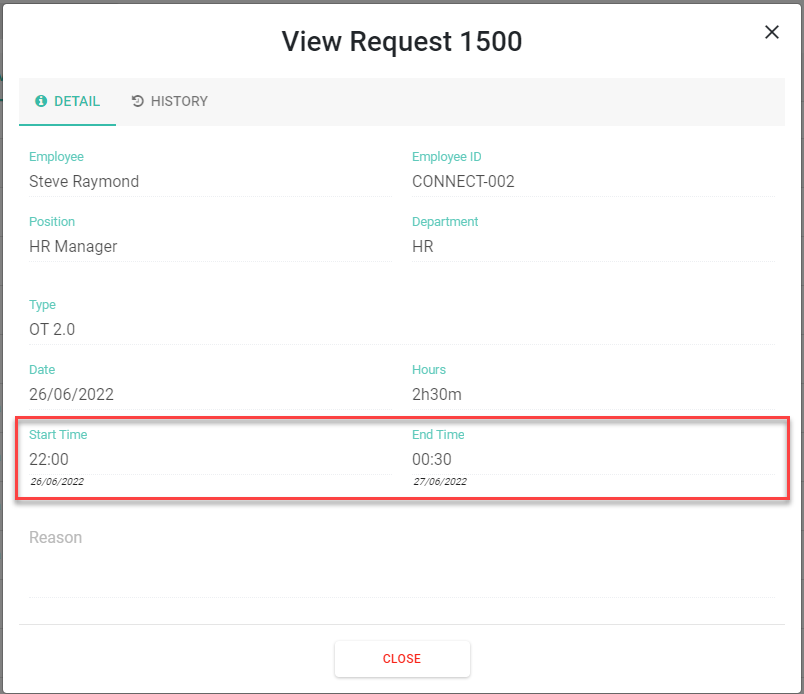 5) Show Date Under Time Fields in Leave / Overtime / Edit Shift / Edit Sign In / Out Request (แสดงวันที่ในฟิล์ดเวลาของคำร้องขอลา / ขอค่าล่วงเวลา / ขอแก้ไขตารางกะ / ขอแก้ไขเวลาเข้า / ออกงาน)