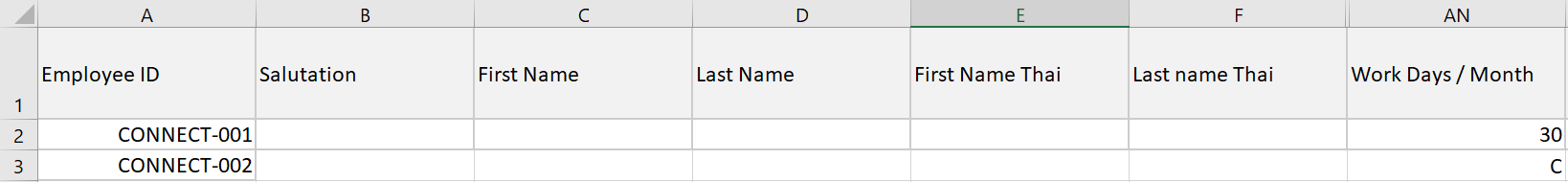 - ใส่ " C " ในช่อง Work Days / Month กรณีต้องการให้