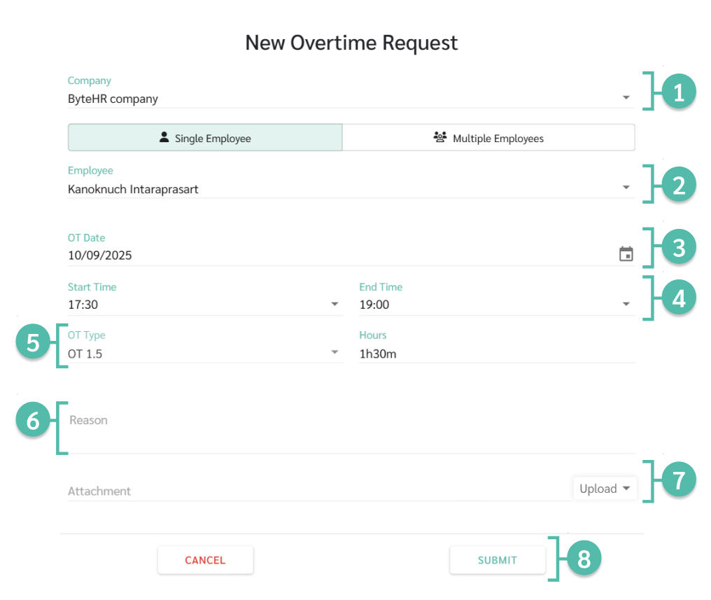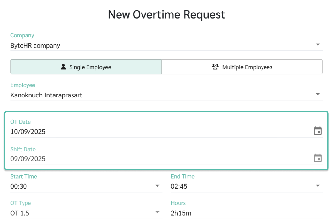 คำร้องขอทำโอทีสำหรับคำร้องเดียว (Single Overtime Request)