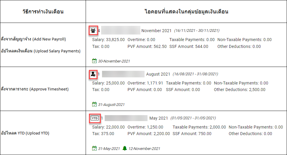 สามารถตรวจสอบที่ไอคอนบนบล็อคเงินเดือนได้เพื่อทราบว่าทำเงินเดือนด้วยวิธีการใด
