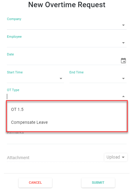 ○ Employee has option to submit OT Request and select Compensate Leave instead of OT Hours