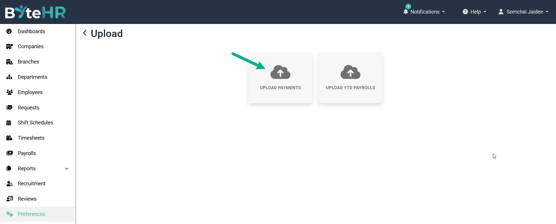 4. ไปที่ อัปโหลดเงินได้ (Upload Payments)