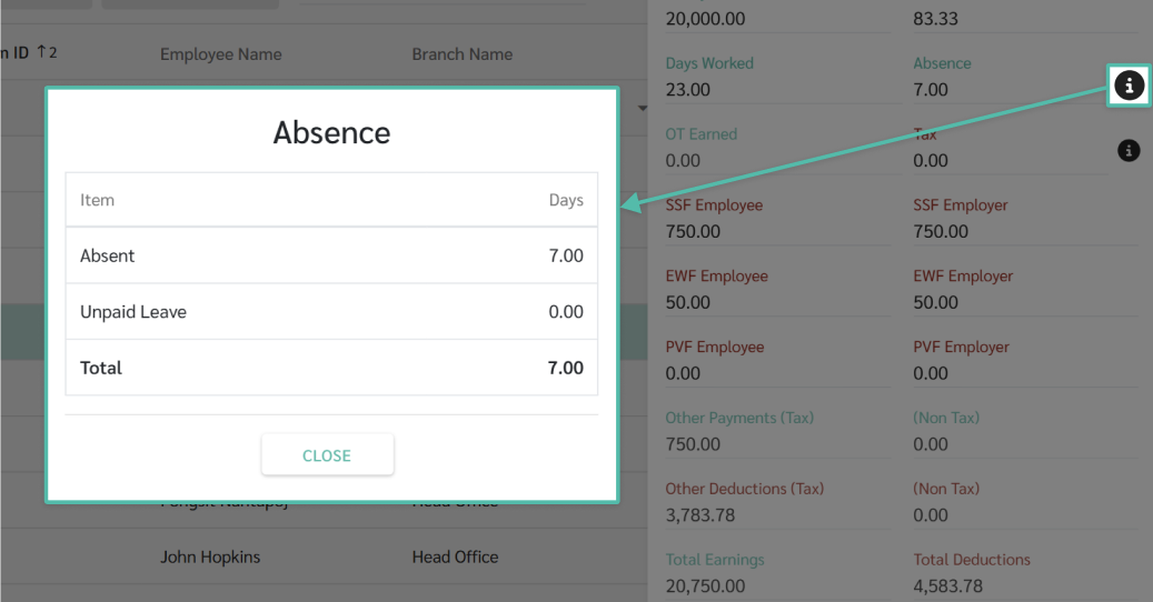 4. สำหรับช่อง ขาดงานและลาไม่จ่ายเงิน (Absence) สามารถคลิกที่ปุ่ม (i)