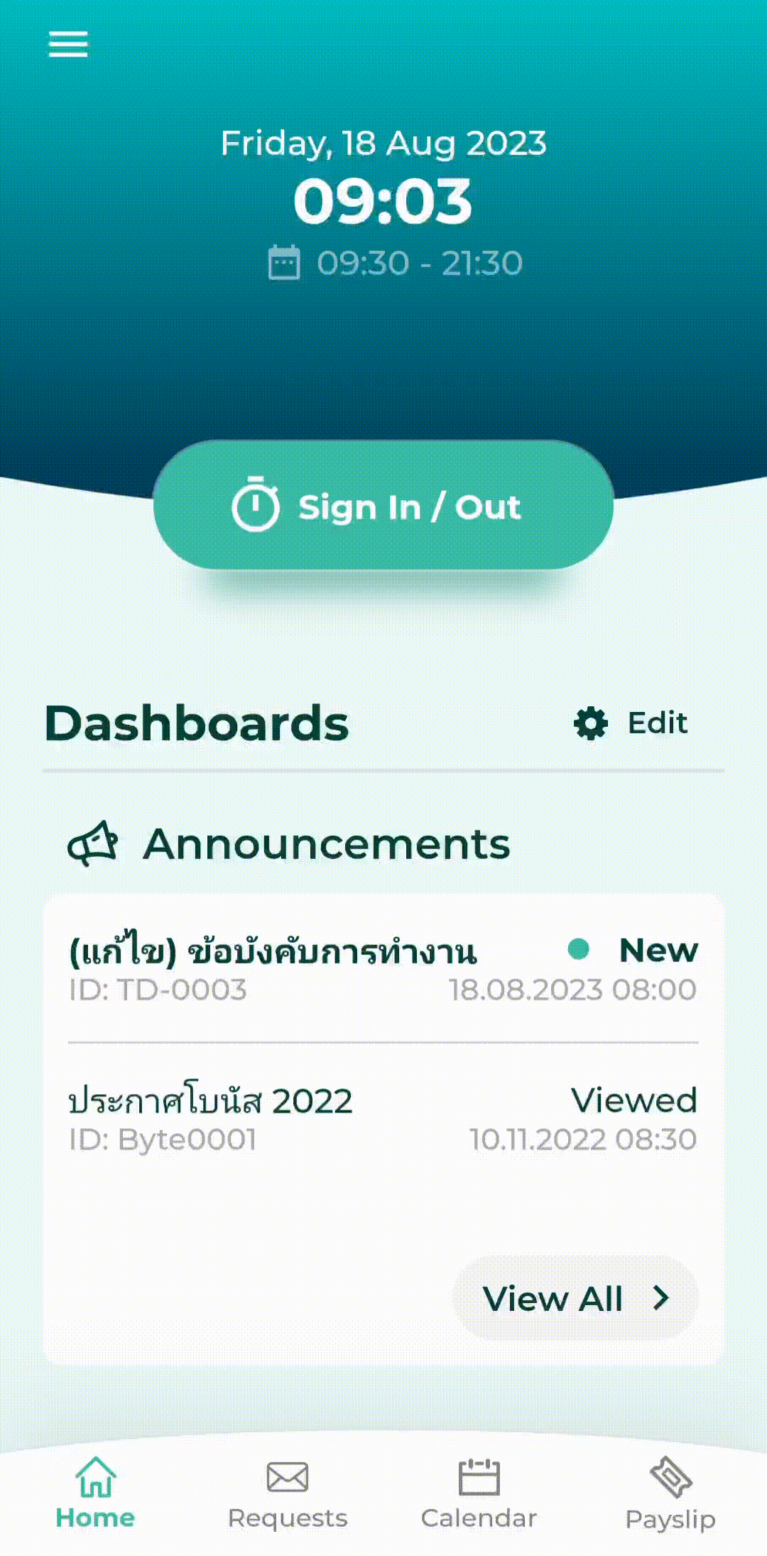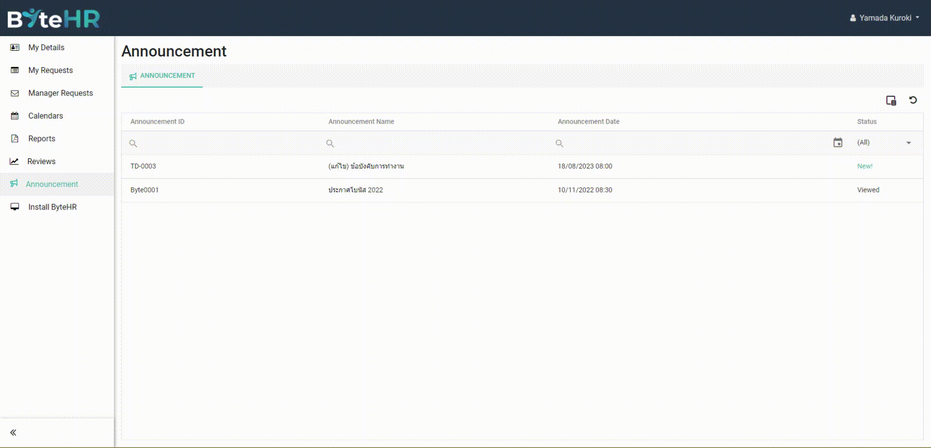 การดูประกาศสำหรับพนักงาน (View Announcement)