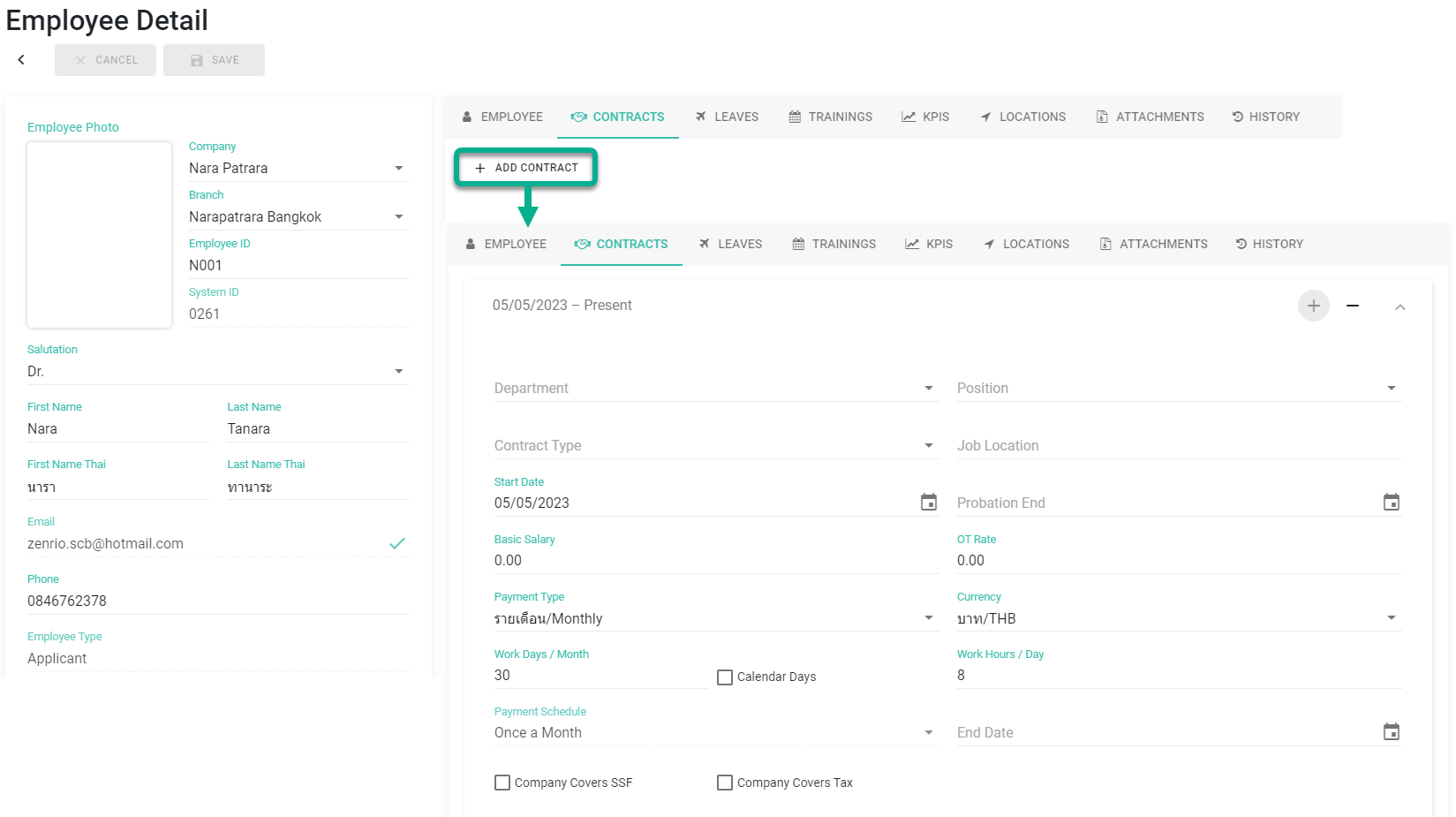 การเพิ่มสัญญาจ้าง (Add Contract)