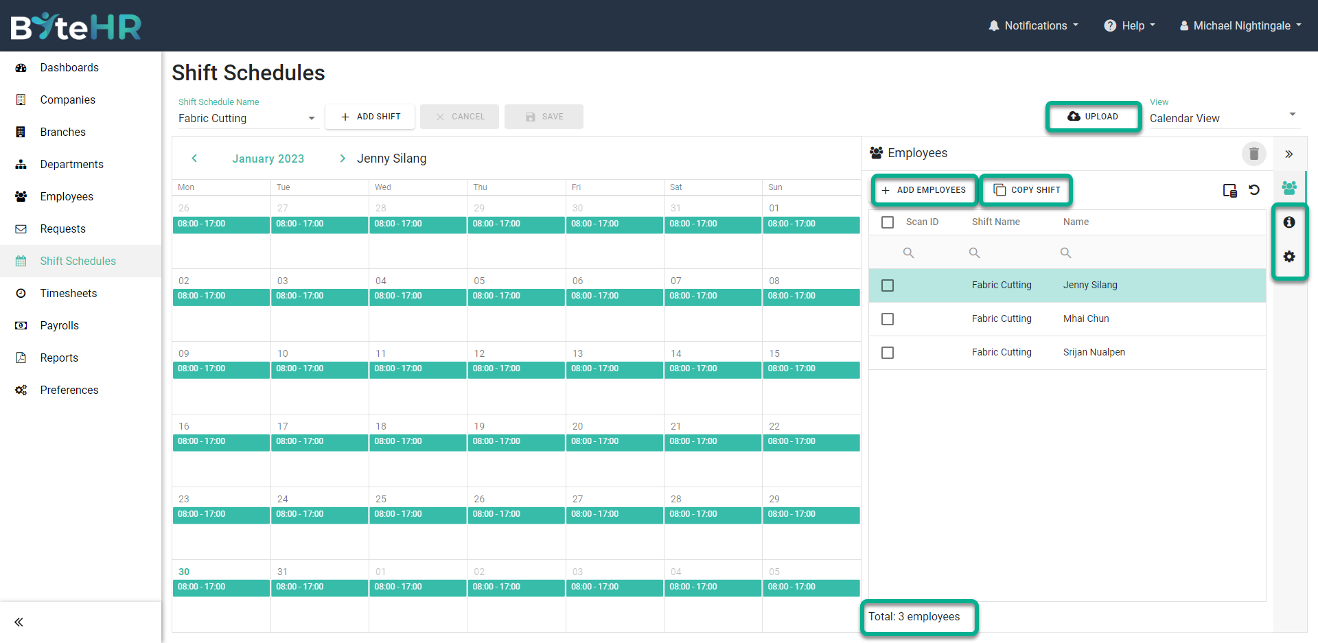 แอดมินสามารถดูจำนวนพนักงานที่อยู่ในแต่ละตารางกะ ในหน้าตารางกะได้
