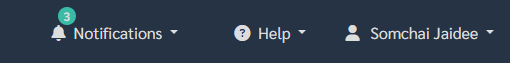วิธีดูการแจ้งเตือนเกี่ยวกับพนักงาน 1. ในมุมมองแอดมิน มุมบนขวาของหน้าจอจะมีหัวข้อ การแจ้งเตือน(Notifications)