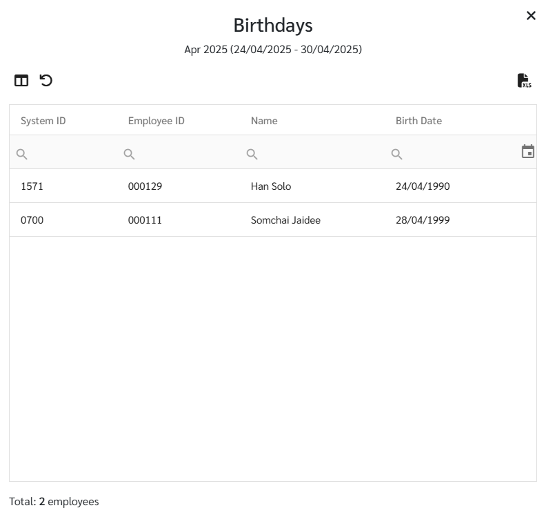 4. คลิกแถวที่ต้องการดูเพื่อดูรายชื่อพนักงานที่มีรายชื่อในการแจ้งเตือนนั้น ๆ