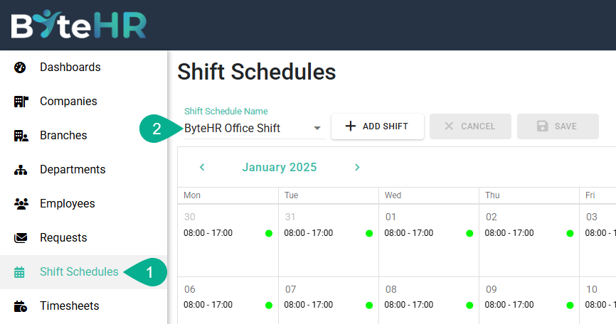 1. คลิกที่ ตารางกะ (Shift Schedules)