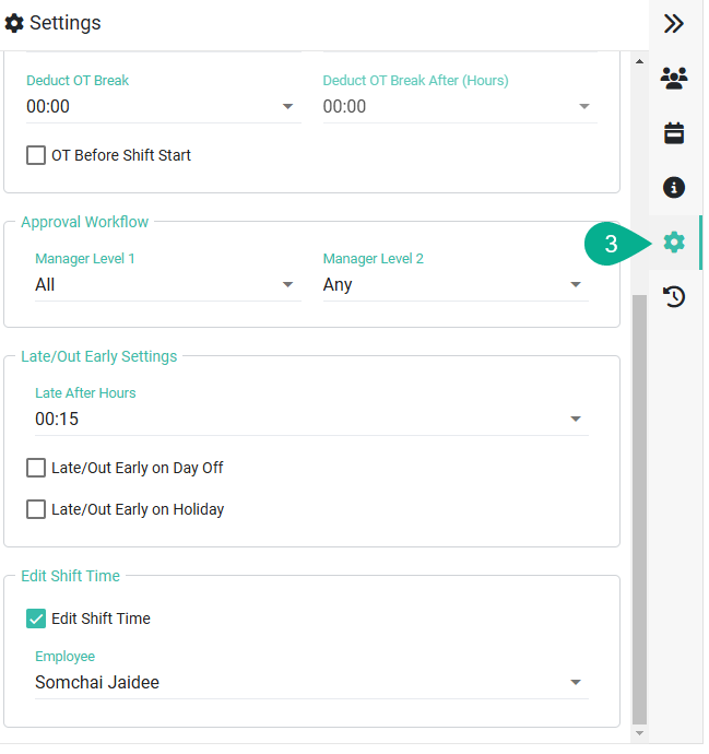 ○ การตั้งค่าในส่วนนี้จะมีผลกับพนักงานทุกท่านที่อยู่ภายใต้ตารางกะเดียวกัน