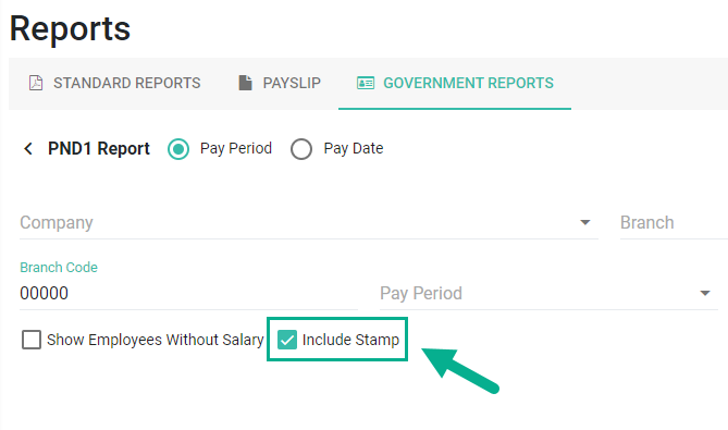 เมื่อโหลดรายงานราชการ สามารถทำเครื่องหมายถูกที่ [Include Stamp] เพื่อประทับตราบริษัทบนรายงานราชการได้