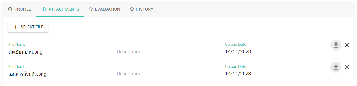 ○ สามารถแนบไฟล์ต่าง ๆ ที่เกี่ยวข้องกับผู้สมัครได้