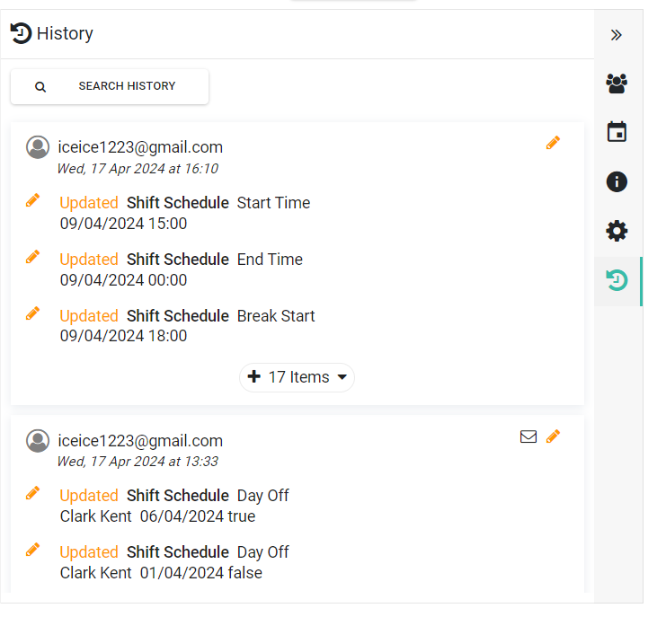 5. Shift Schedule History