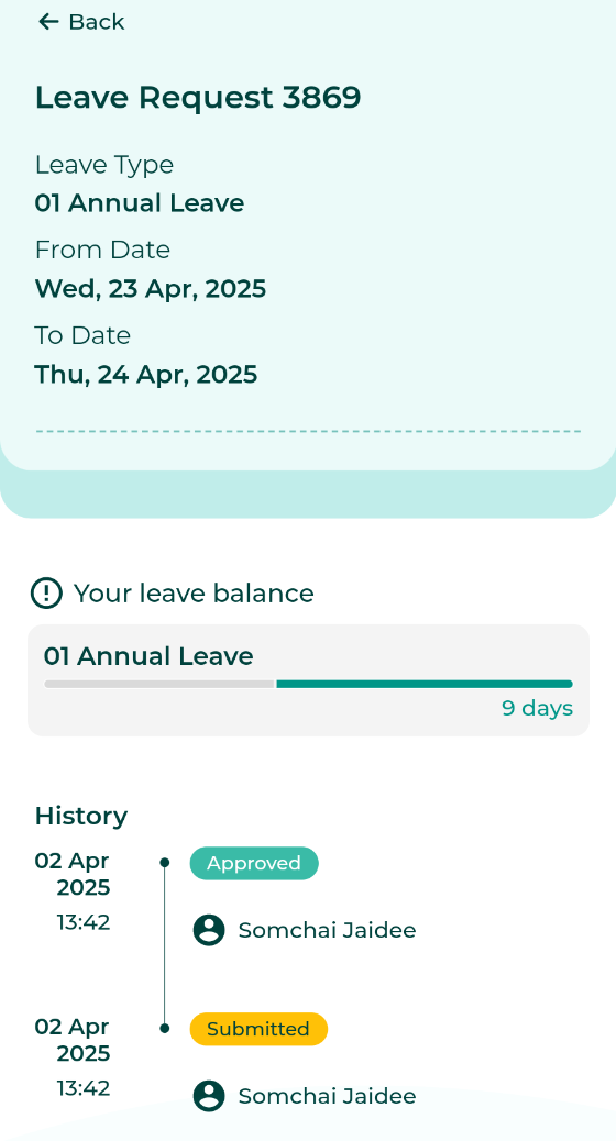 ○ อ่านเรื่อง ผู้จัดการดูและอนุมัติคำร้องในแอพมือถือ (Manager View/Approve Request from Mobile App) ได้ที่ LEARN MORE
