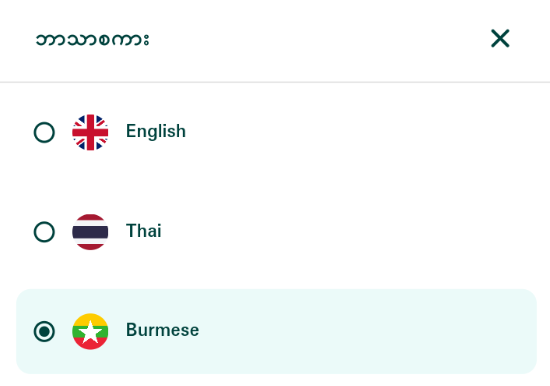 พนักงานสามารถเลือกใช้งานแอปมือถือภาษาพม่าได้
