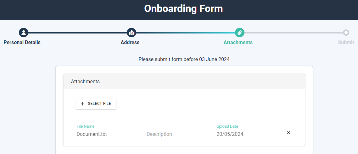 ปัจจุบันผู้สมัครสามารถแนบไฟล์ต่าง ๆ บนแบบฟอร์มกระบวนการสำหรับผู้สมัคร(Onboarding Form) ได้