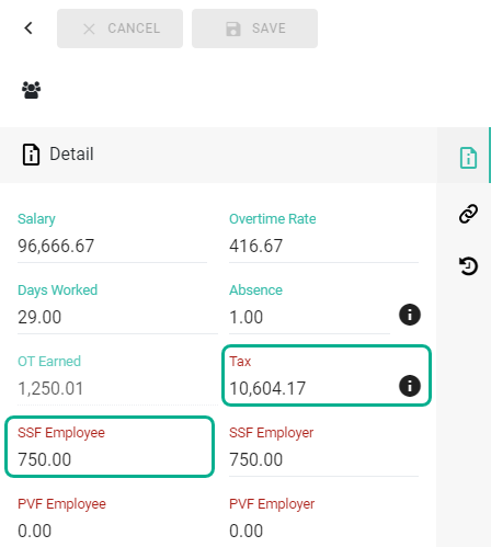 3. เมื่อมีการทำเงินเดือน ระบบจะคำนวณภาษี/ประกันสังคม และยอดภาษี/ประกันสังคมที่ต้องบวกกลับจะแสดงเป็นเงินได้ในรายละเอียดเงินเดือน