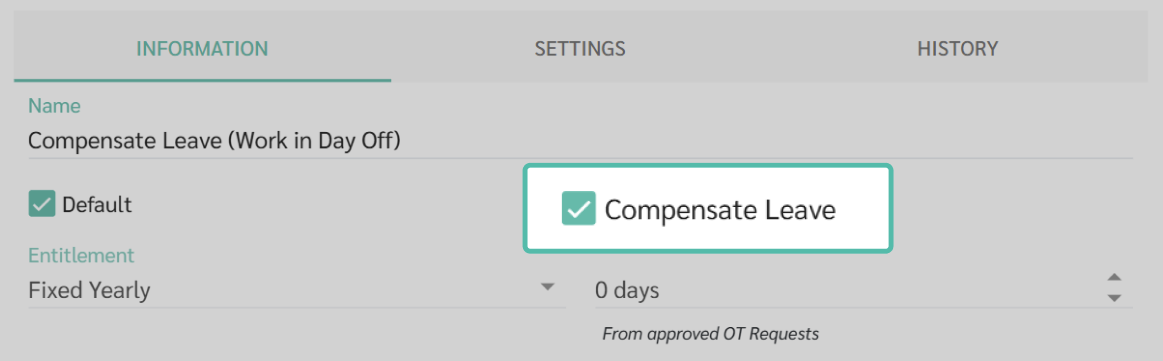 3. เพิ่มประเภทวันลาที่ใช้สำหรับชดเชยวันลา (Compensate Leave)