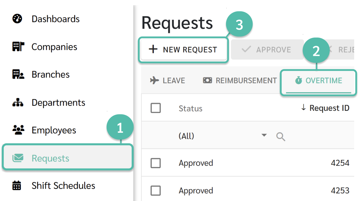 | การลงเวลา | คำร้องขอค่าล่วงเวลา