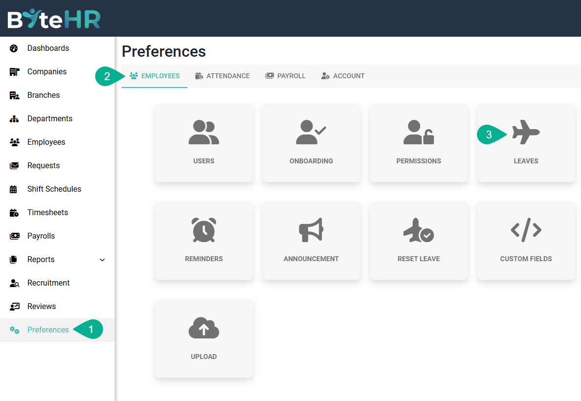 2. คลิกที่แท็บ การตั้งค่าเกี่ยวกับพนักงาน (Employees)