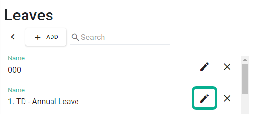 4. ค้นหาประเภทวันลาที่ต้องการและคลิก แก้ไข (Edit)
