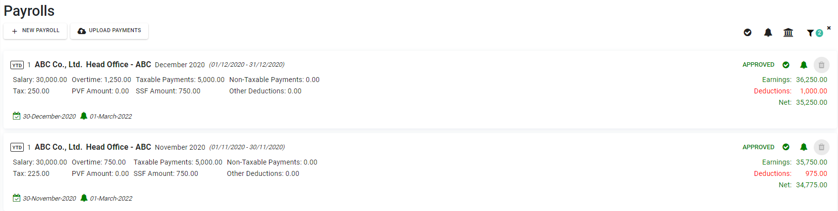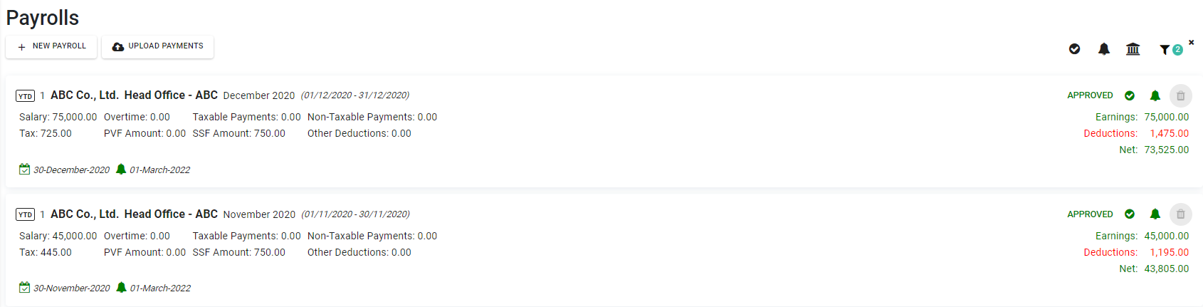 ระบบจะแสดงข้อมูลเงินเดือนตามการอัปโหลดครั้งที่ 2