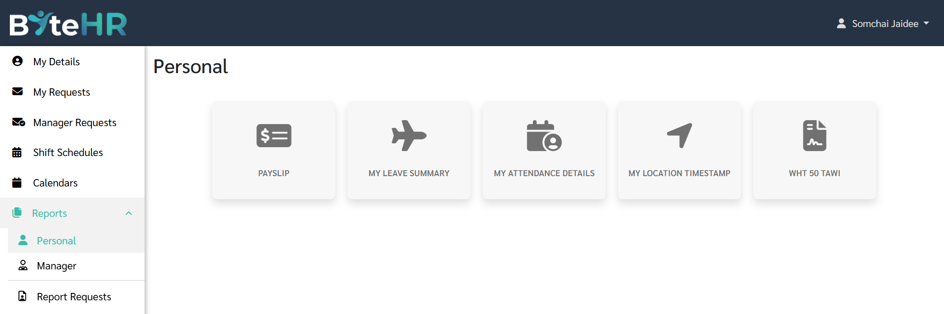 app.byte-hr.com2. เมื่อพนักงานล็อคอินเข้าใช้งานระบบ ByteHR จะพบฟังก์ชั่นต่างๆ ดังนี้