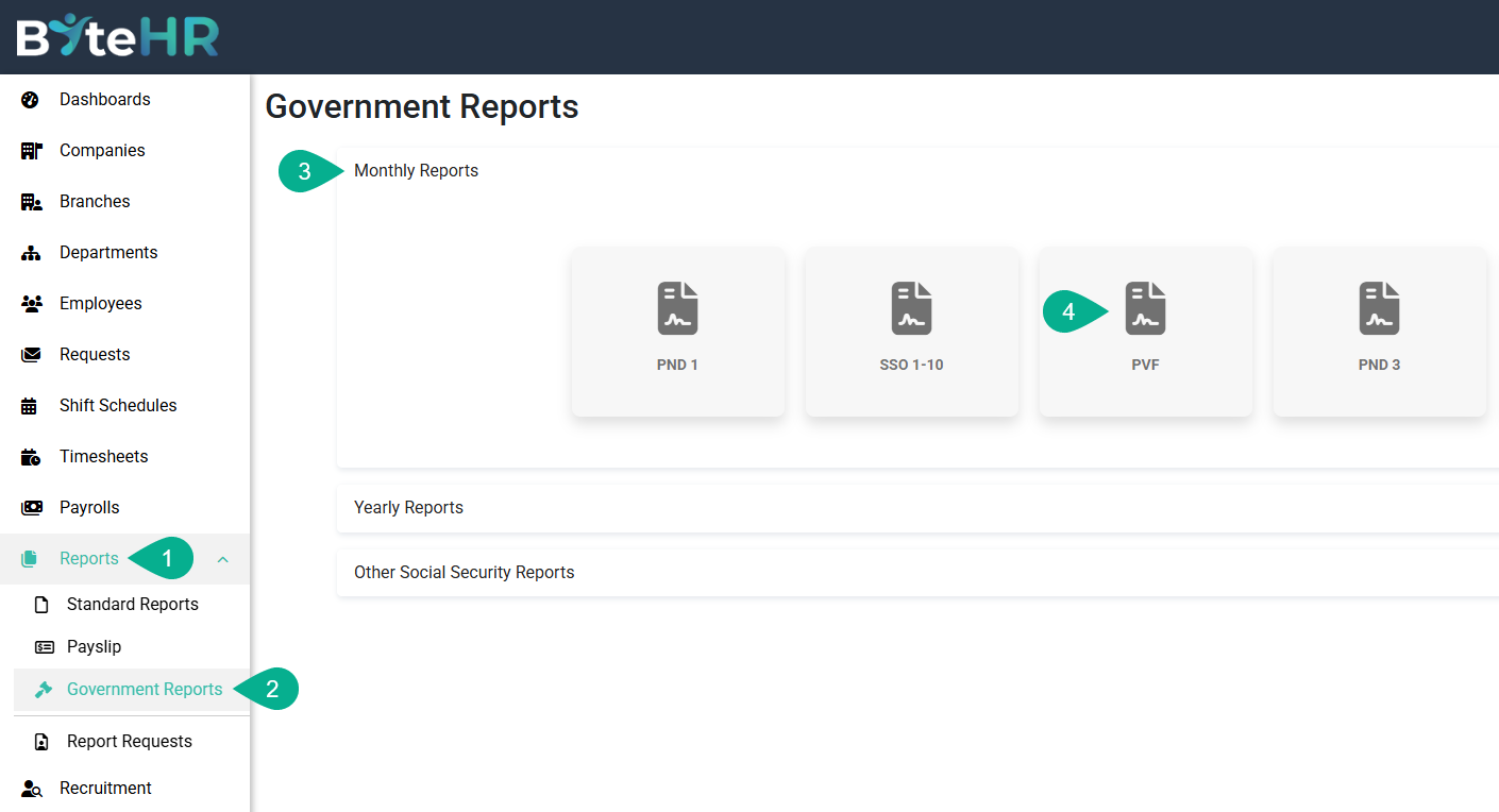 2. ไปที่ รายงานราชการ (Government Reports) และเลือก รายงานรายเดือน (Monthly Reports)