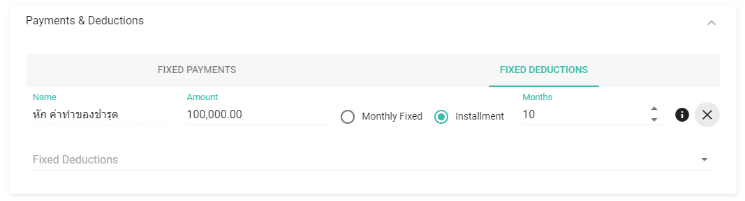 เงินหักประจำ (ผ่อนชำระ) (Fixed Deduction - Installment)