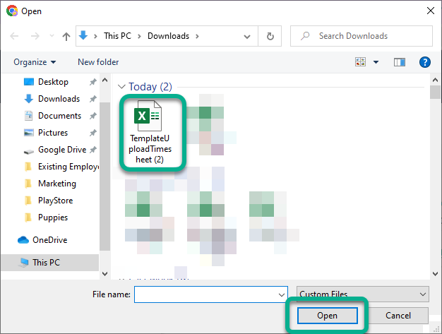 6. เลือกไฟล์ Excel ที่ต้องการอัปโหลด และคลิก เปิด (Open)