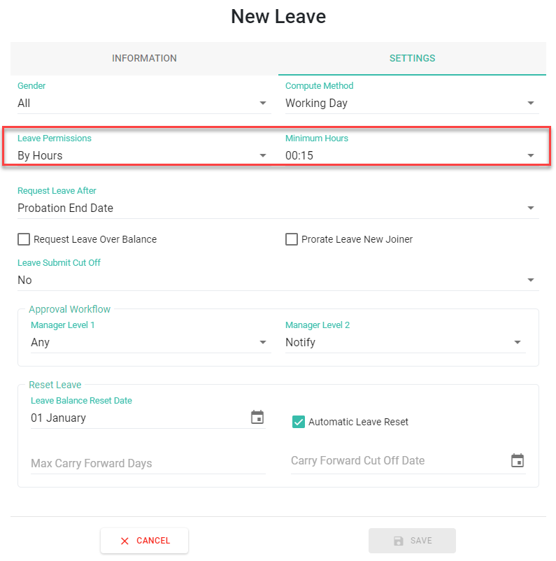 2) Set Minimum Hours in Leave Setting for Leave Less Than Full Day (กำหนดจำนวนชั่วโมงขั้นต่ำในการตั้งค่าวันลาสำหรับการลาไม่เต็มวัน)