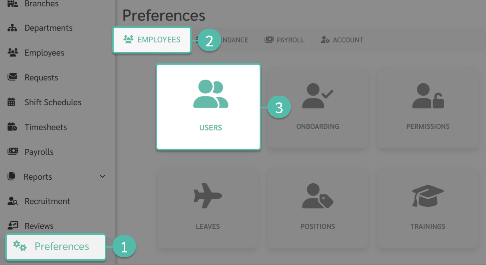 1.เชิญพนักงานใช้ระบบทีละคน 1. ไปที่เมนู การตั้งค่า (Preferences)