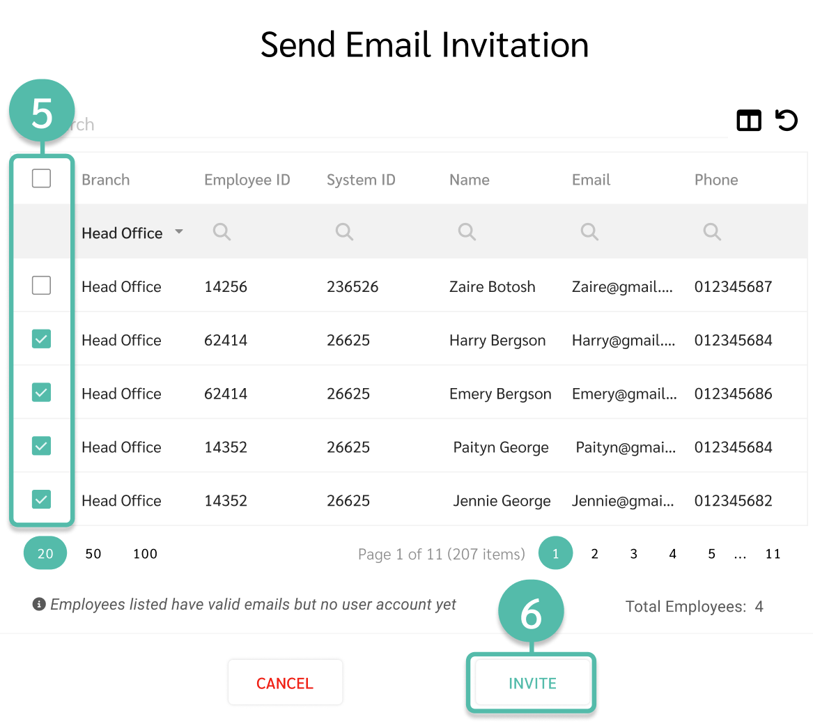 5. สามารถกดเลือกชื่อพนักงานที่ต้องการส่งคำเชิญ