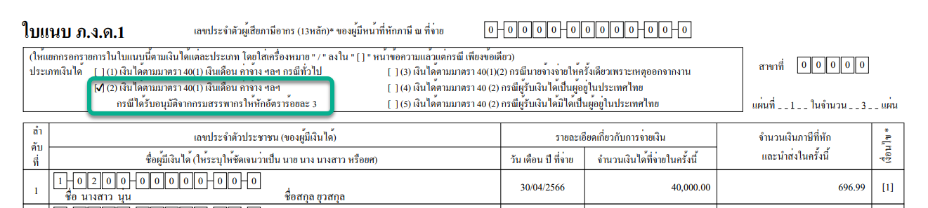 เงินได้ 40(1) กรณีหักภาษี 3% (Income 40(1) for Fixed Tax Rate 15%)