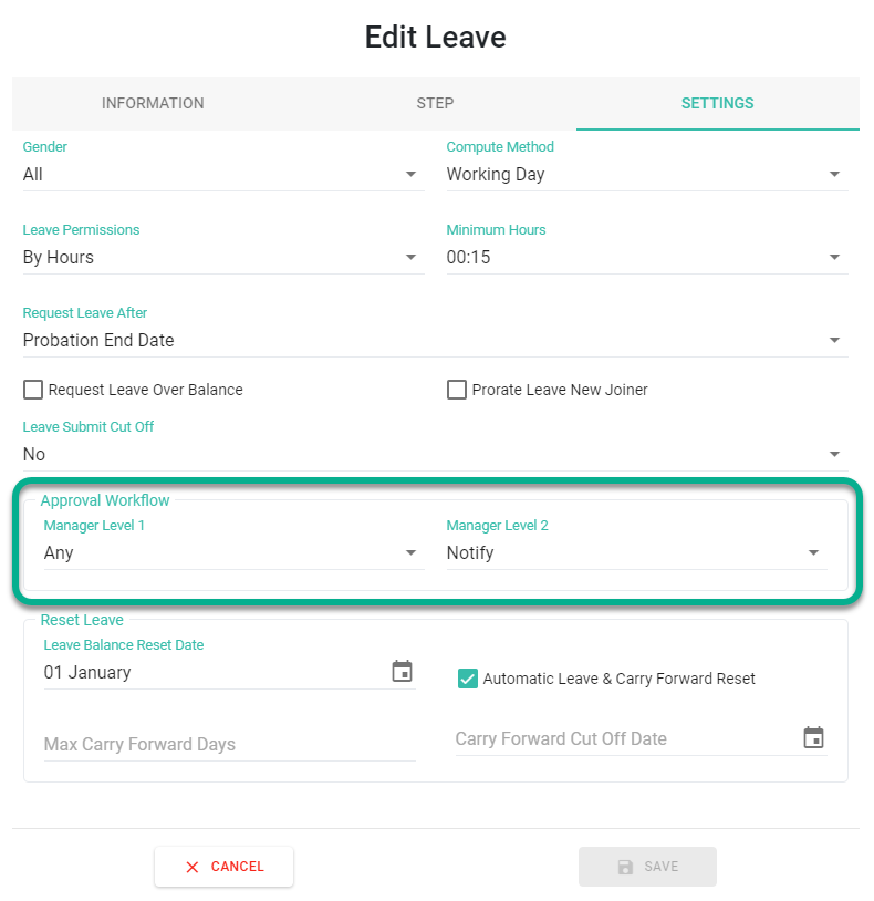 - คุณสามารถเลือกขั้นตอนการอนุมัติของ ผู้จัดการระดับที่ 1 และ ผู้จัดการระดับที่ 2